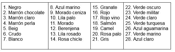 Nota: los colores son orientativos, pueden variar dependiendo del dispositivo donde los veas.